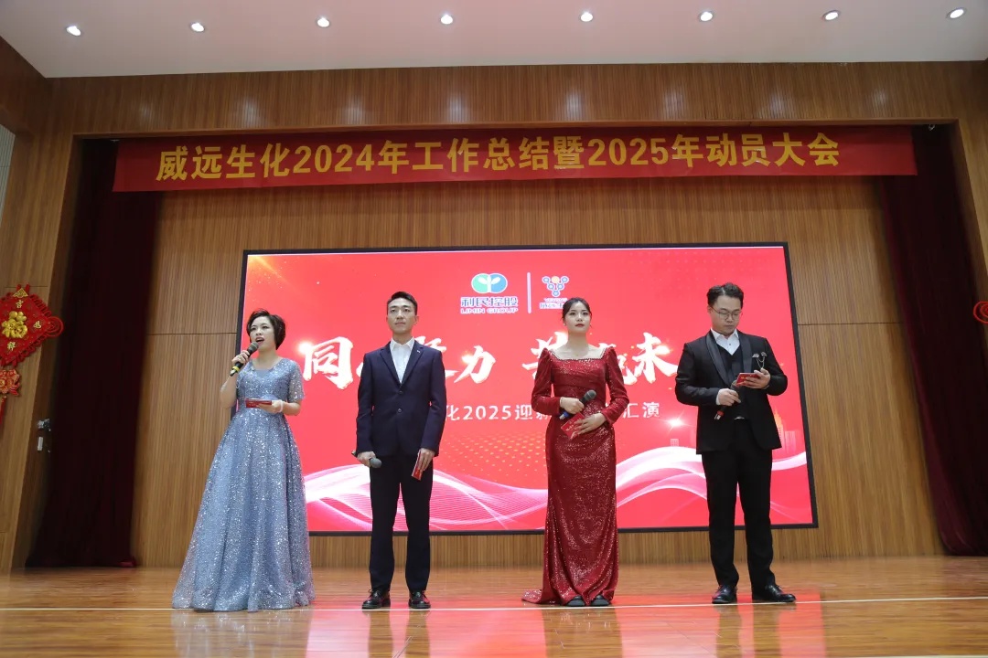 為更好總結(jié)2024年工作,謀劃部署2025年發(fā)展,落實集團(tuán)決策部署,1月18號上午,利民控股子公司威遠(yuǎn)生化隆重召開了2024年度工作總結(jié)暨2025年工作動員大會。集團(tuán)領(lǐng)導(dǎo)、威遠(yuǎn)生化全體中層以上干部、先進(jìn)集體代表、先進(jìn)個人、員工代表180余人共聚一堂,共謀發(fā)展。